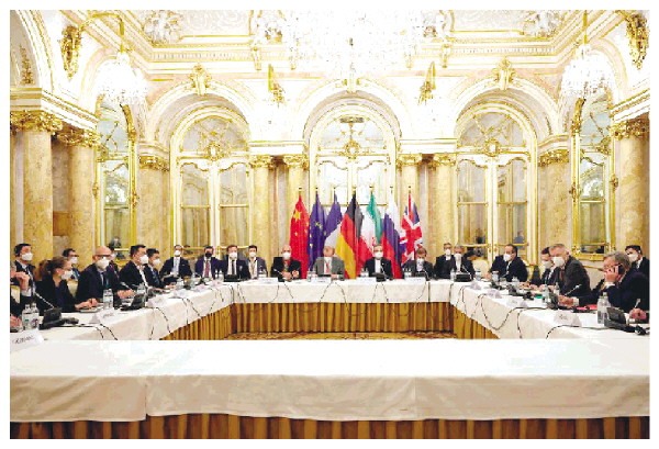 这是2021年12月27日在奥地利维也纳拍摄的伊朗核问题全面协议联合委员会政治总司长级会议现场。 新华社发