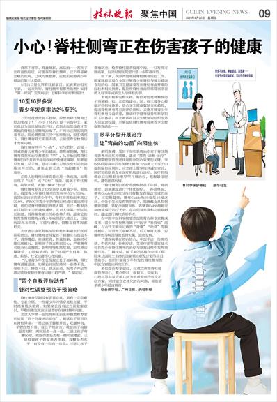 据了解,我国高度重视脊柱侧弯防控工作。国家体育总局在全国开展青少年脊柱与视力健康专项活动;国家卫生健康委发布脊柱弯曲异常防控技术相关指南,提出将脊柱弯曲异常筛查项目纳入每学年或新生入学体检内容。