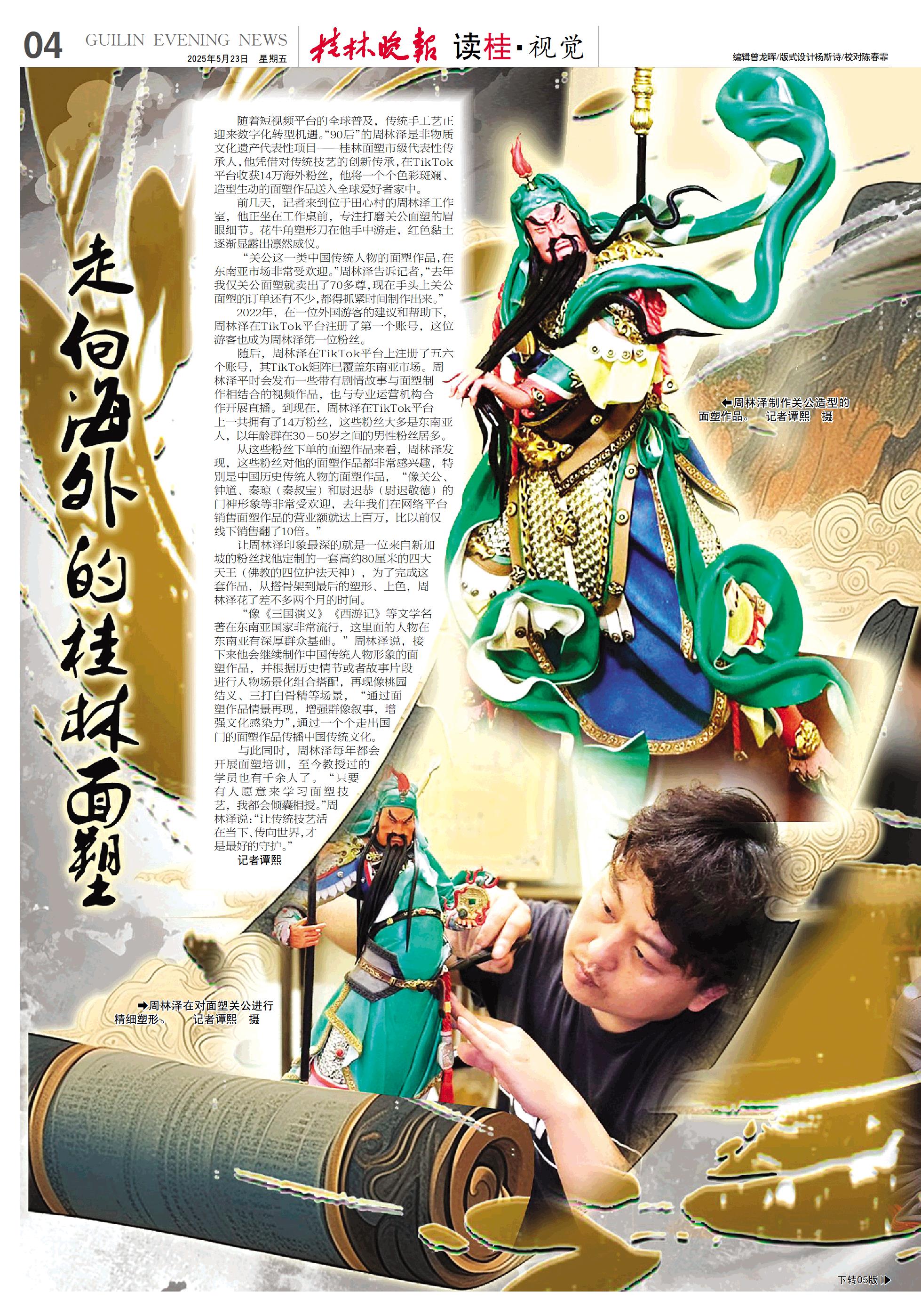 随着短视频平台的全球普及,传统手工艺正迎来数字化转型机遇。“90后”的周林泽是非物质文化遗产代表性项目——桂林面塑市级代表性传承人,他凭借对传统技艺的创新传承,在TikTok平台收获14万海外粉丝,他将一个个色彩斑斓、造型生动的面塑作品送入全球爱好者家中。