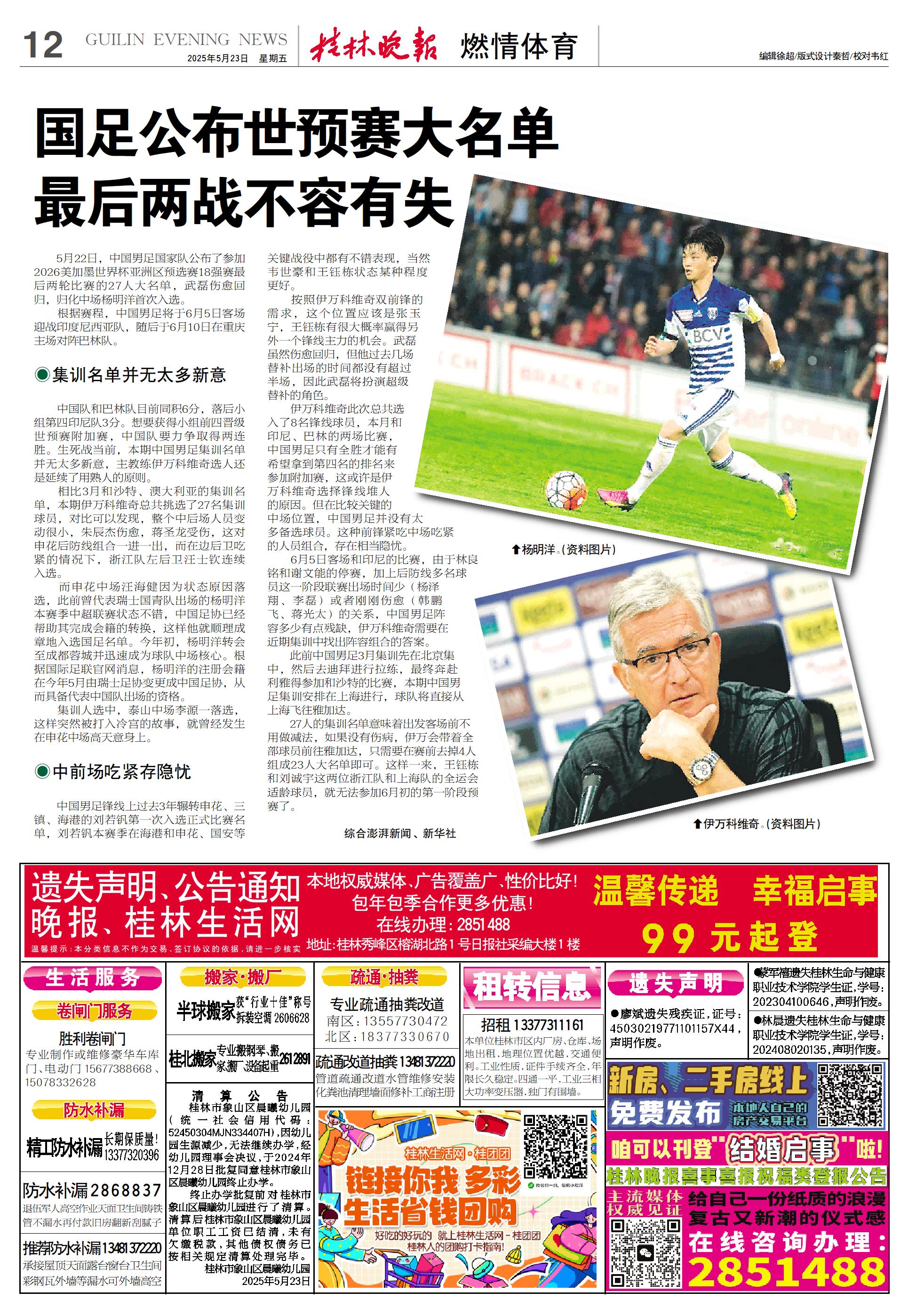 国足公布世预赛大名单