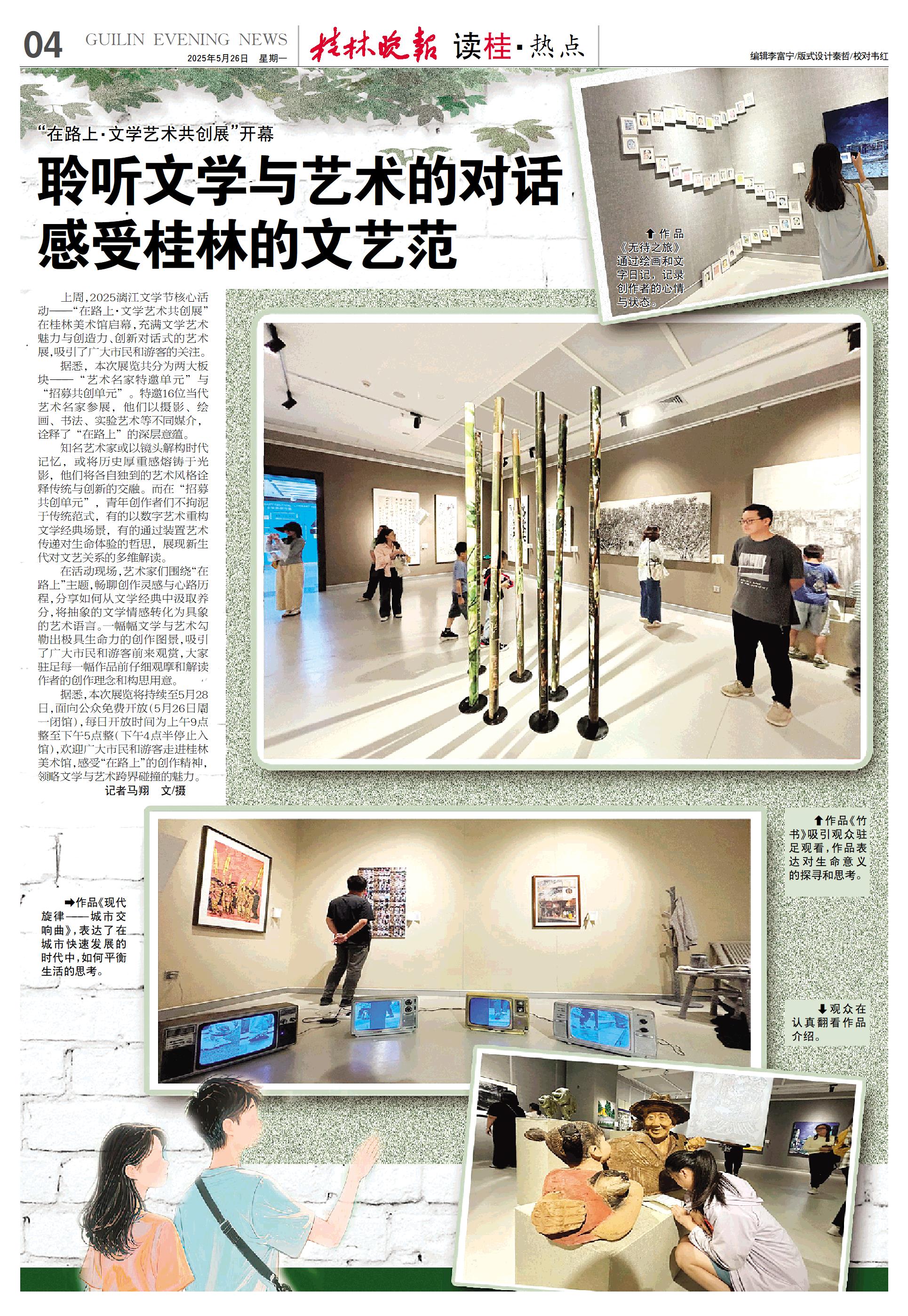 上周,2025漓江文学节核心活动——“在路上·文学艺术共创展”在桂林美术馆启幕,充满文学艺术魅力与创造力、创新对话式的艺术展,吸引了广大市民和游客的关注。