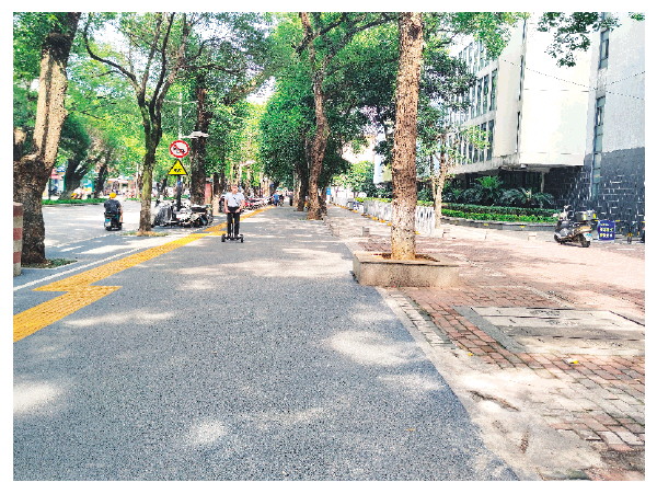 芦笛小学前的人行道已经完成改造,人行道平整得可以走平衡车。记者林扬 摄
