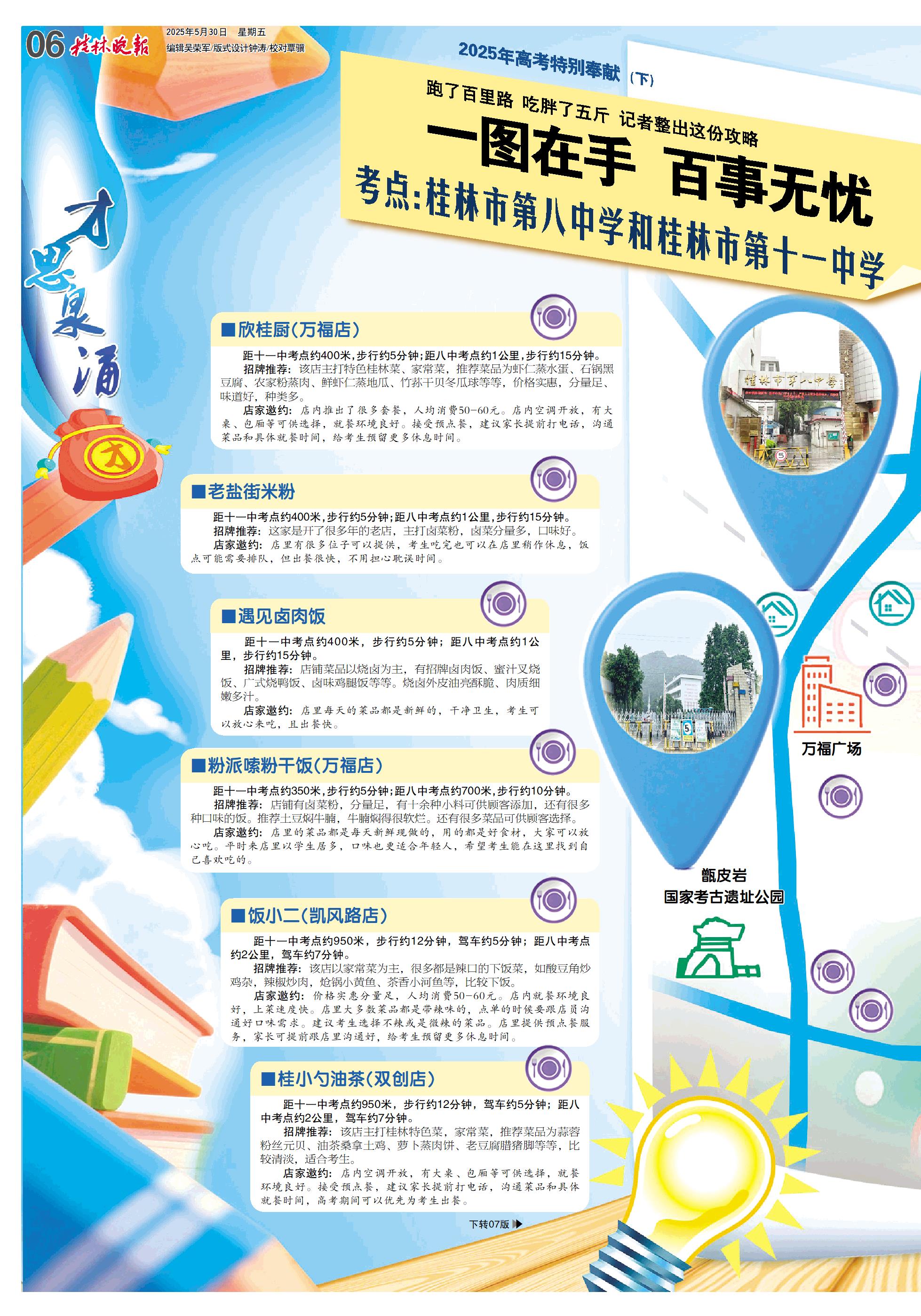 店家邀约:店里每天的菜品都是新鲜的,干净卫生,考生可以放心来吃,且出餐快。