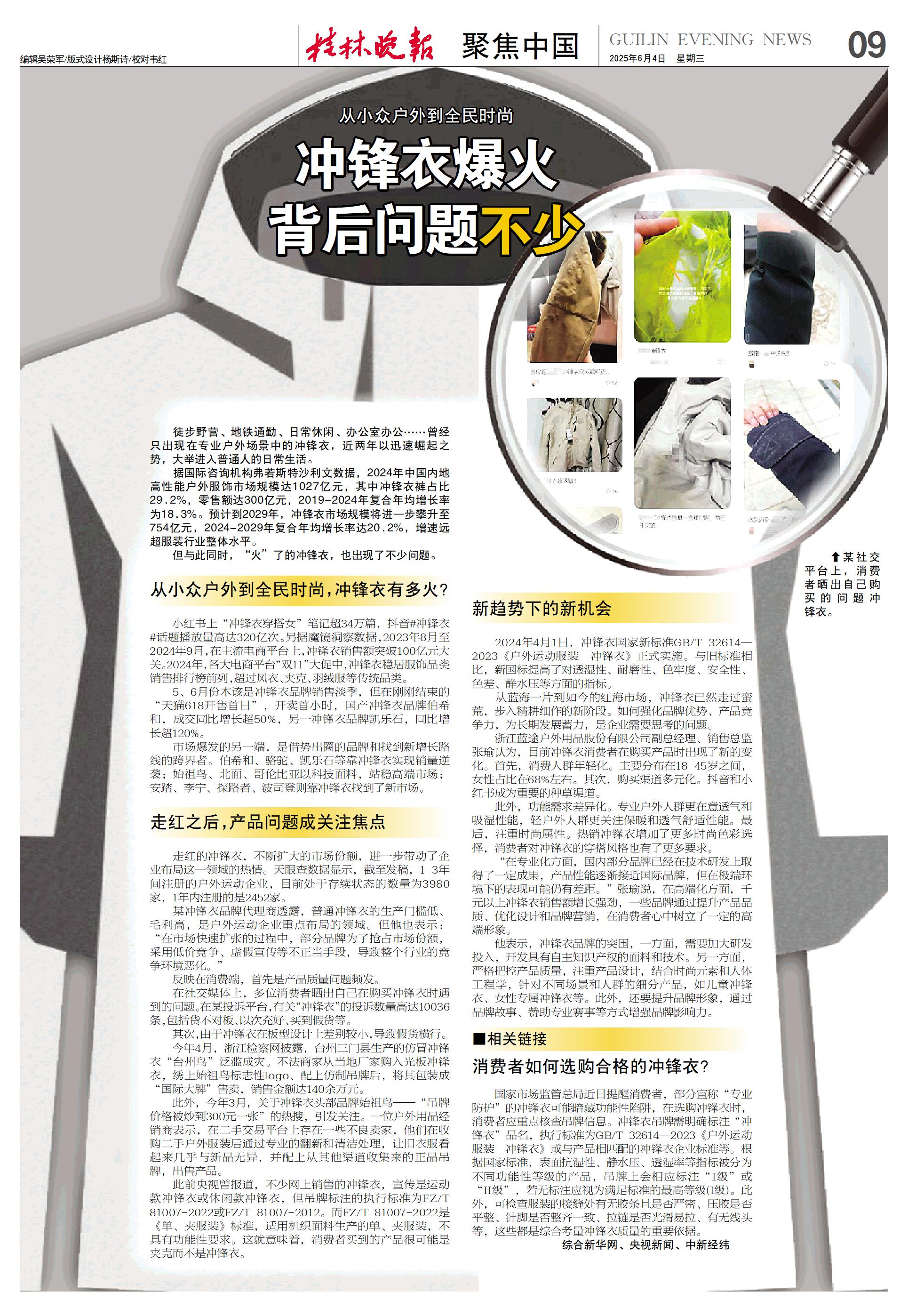 但与此同时,“火”了的冲锋衣,也出现了不少问题。