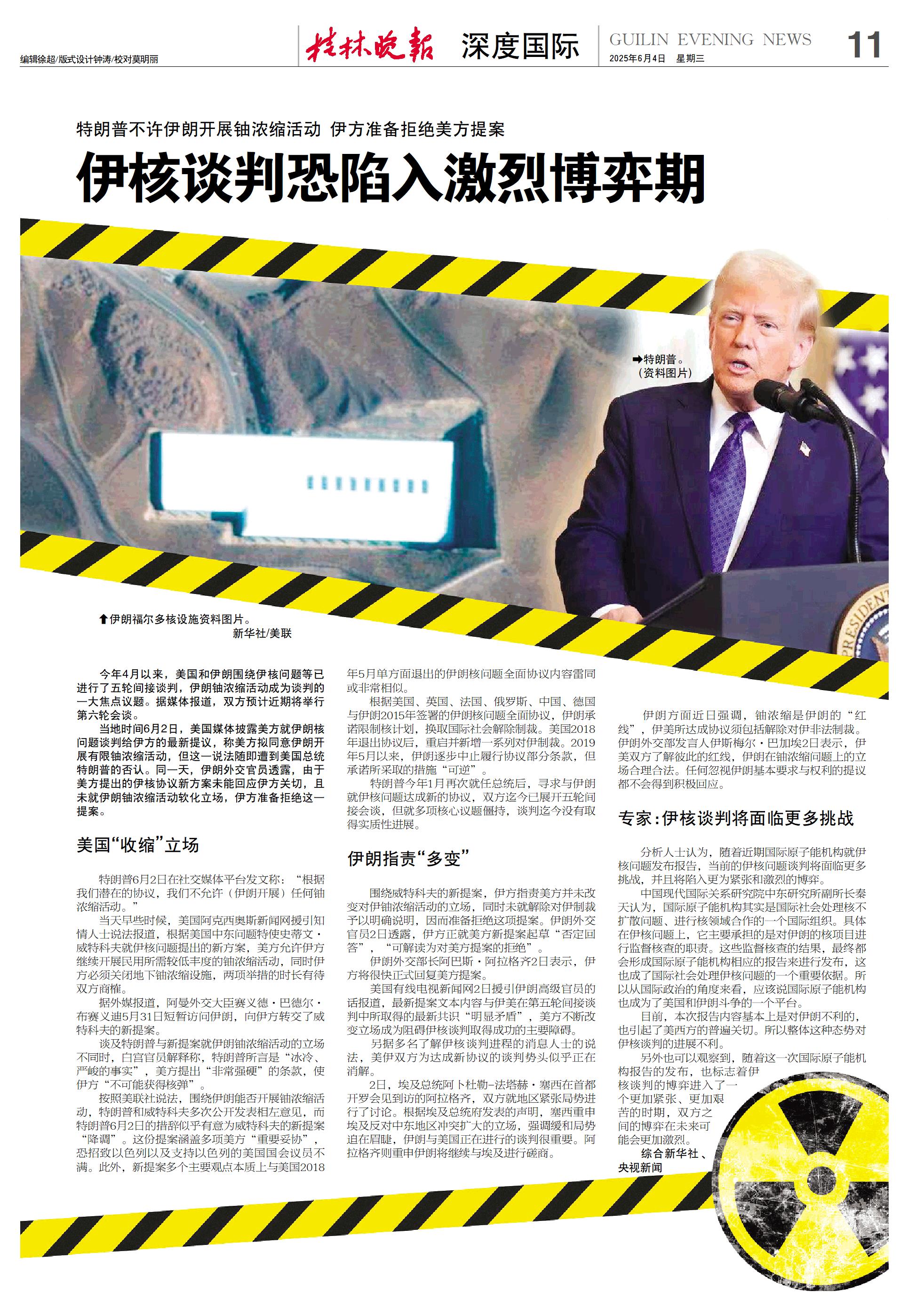 特朗普6月2日在社交媒体平台发文称:“根据我们潜在的协议,我们不允许(伊朗开展)任何铀浓缩活动。”