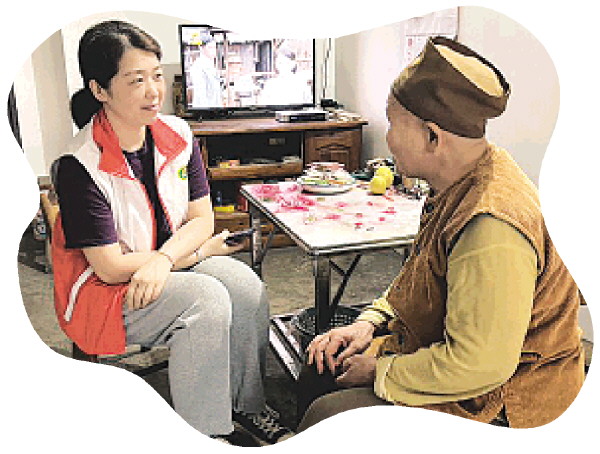 社区工作人员陈晓帆(左)来到杨阿姨家陪她聊天。