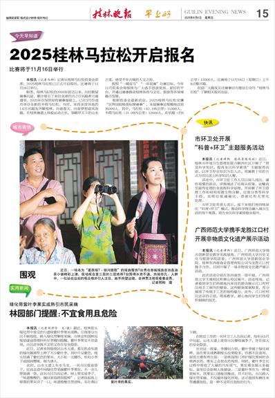 本报讯(记者马翔)记者从桂林马拉松组委会获悉,2025桂林马拉松已正式开启报名,比赛将于11月16日举行。