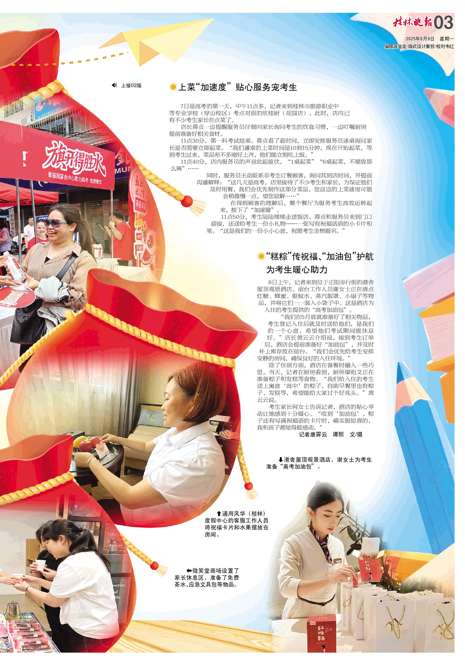 “我们在5月底就准备好了相关物品,考生登记入住后就及时送给他们,是我们的一个心意,希望他们考试期间能休息好。”店长黄云云介绍说,接到考生订单后,酒店会提前准备好“加油包”,并及时补上库存放在前台。“我们会优先给考生安排安静的房间,确保良好的入住环境。”