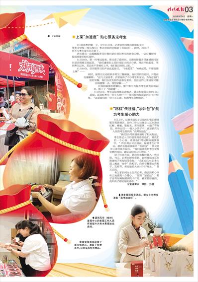 考生家长何女士告诉记者,酒店的贴心举动让她感到十分暖心。“收到‘加油包’、粽子还有写满祝福语的卡片时,确实挺惊喜的,我和孩子都觉得挺感动。”