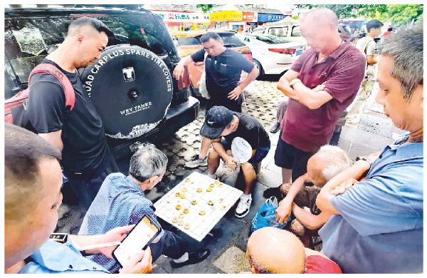 6月8日下午,市七星区建干路边的树荫下,两名市民在下象棋。两人棋逢对手,不相上下,引得不少路过市民围观。 记者邢刚 摄