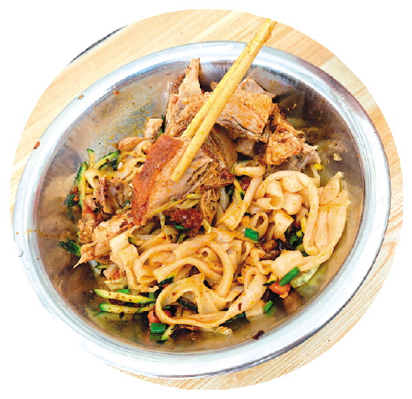 酱汁浓郁的烧鸭粉与清爽的黄瓜丝是“绝配”。