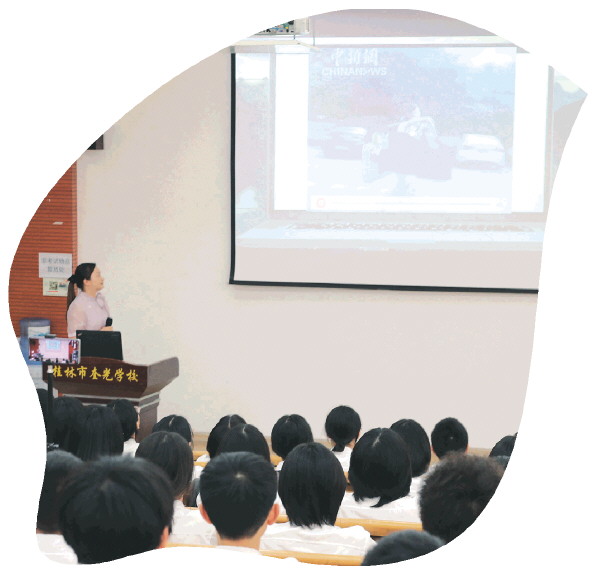 在距离灌阳县百公里之外的桂林市区,桂林市奎光学校校长张曦也看到了这段视频。作为一名教育工作者,她思考着如何能将这段视频的背后意义传递给学生。于是,在她策划之下,一场筹备了两天的“特殊”班会课如期举行。