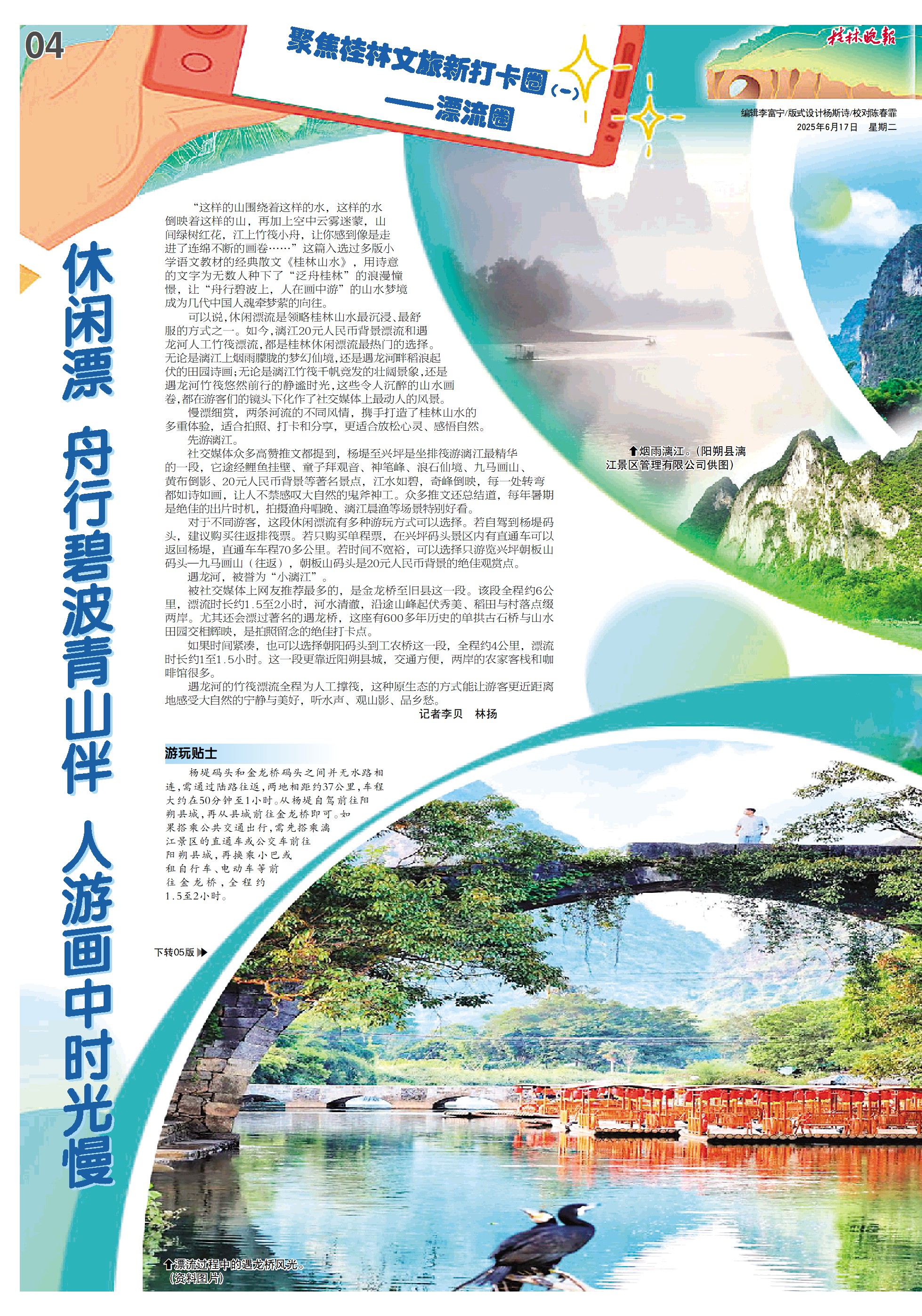 休闲漂 舟行碧波青山伴 人游画中时光慢