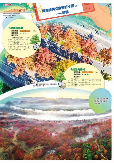 “小香游桂林”:秋天,七星路的枫叶开始逐渐变红,为这座城市增添了一抹浓烈的秋色。漫步其中,仿佛置身于一个童话世界,阳光下的红色枫叶令人心醉。