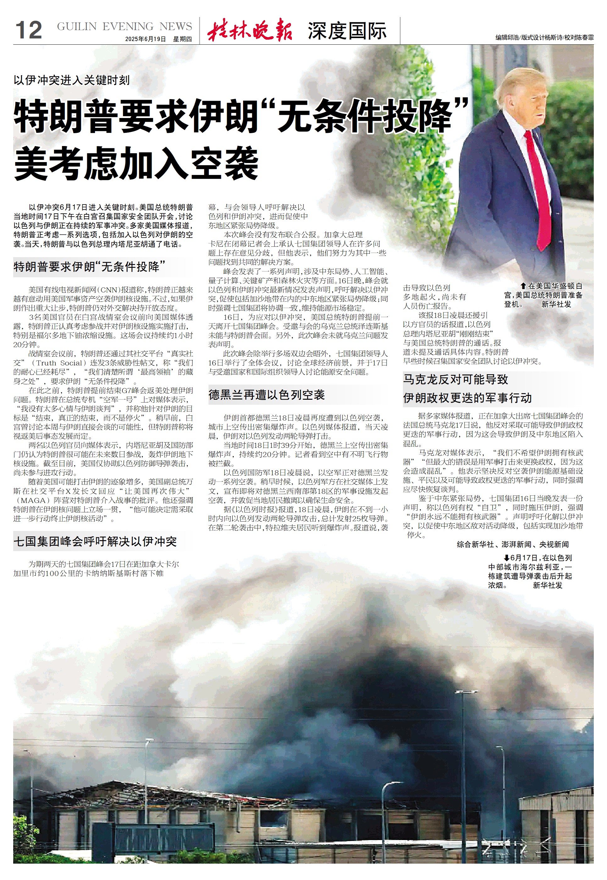 以伊冲突6月17日进入关键时刻。美国总统特朗普当地时间17日下午在白宫召集国家安全团队开会,讨论以色列与伊朗正在持续的军事冲突。多家美国媒体报道,特朗普正考虑一系列选项,包括加入以色列对伊朗的空袭。当天,特朗普与以色列总理内塔尼亚胡通了电话。