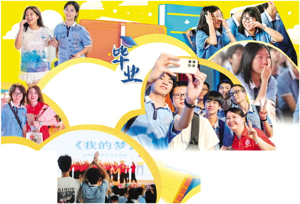 毕业典礼上,师生们准备了丰富多彩的文艺表演。学生们自导自演的喜剧小品《暑假补习班》、诗朗诵《感恩成长,扬帆远航》、小品《新相亲大会》、舞蹈串烧《歌舞青春》等节目,展现出蓬勃朝气与无限活力。