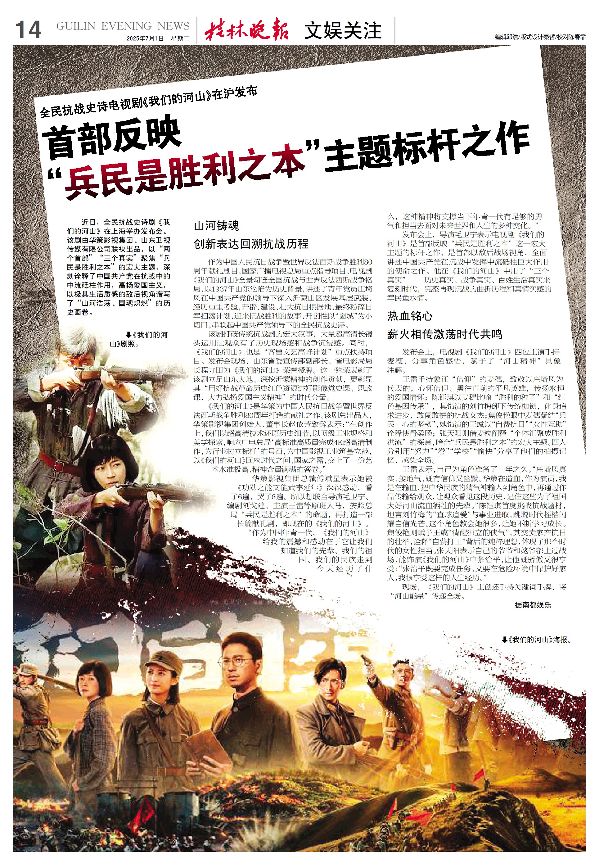 近日,全民抗战史诗剧《我们的河山》在上海举办发布会。该剧由华策影视集团、山东卫视传媒有限公司联袂出品,以“两个首部”“三个真实”聚焦“兵民是胜利之本”的宏大主题,深刻诠释了中国共产党在抗战中的中流砥柱作用,高扬爱国主义,以极具生活质感的敌后视角谱写了“山河浩荡、国魂炽燃”的历史画卷。