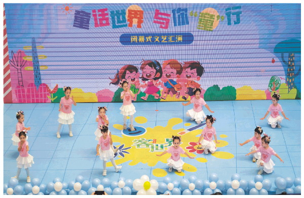 5日在客世界里面,小红帽桂林七星园在这里开展童话节毕业展演,小朋友们正在这里向家长们展示自己的童趣。图为小朋友们正在表演节目。