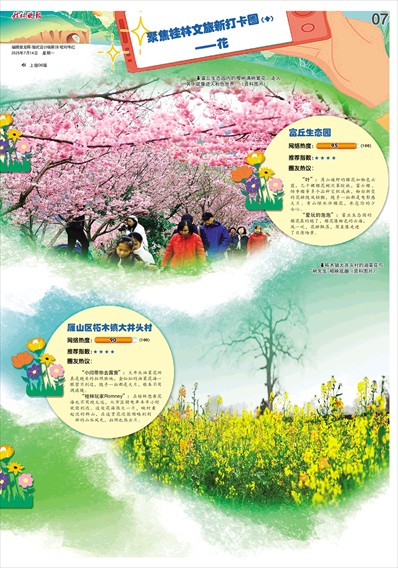 “叶”:漫山遍野的樱花如粉色云霞,几千棵樱花树次第绽放,富士樱、绯枣樱等多个品种交织成画,粉白渐变的花瓣随风轻颤,随手一拍都是电影感大片。青山绿水伴樱花,承包你的少女心。