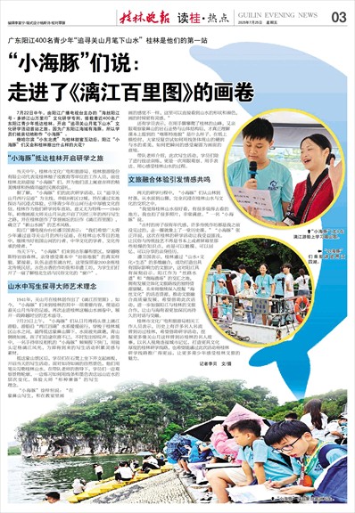 7月22日中午,由阳江广播电视台主办的“海丝阳江号·多娇江山万里行”文化研学专列,搭载着近400名广东阳江青少年抵达桂林,开启“追寻关山月笔下山水”文化研学活动首站之旅。因为广东阳江海域有海豚,所以学员们被亲切地称作“小海豚”。