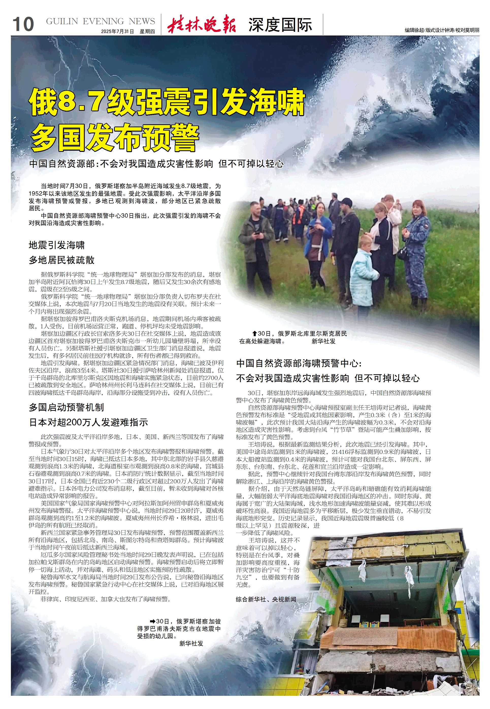 俄8.7级强震引发海啸