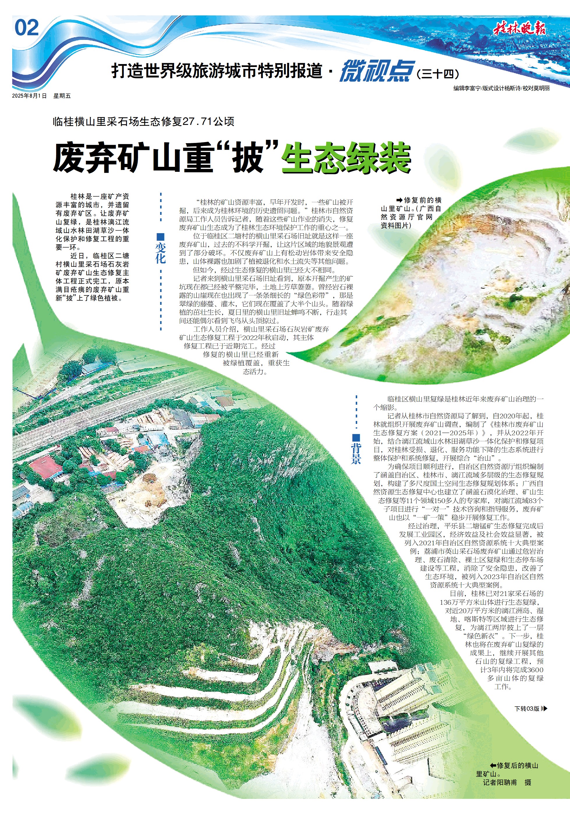 “桂林的矿山资源丰富,早年开发时,一些矿山被开掘,后来成为桂林环境的历史遗留问题。”桂林市自然资源局工作人员告诉记者,随着这些矿山作业的消失,修复废弃矿山生态成为了桂林生态环境保护工作的重心之一。