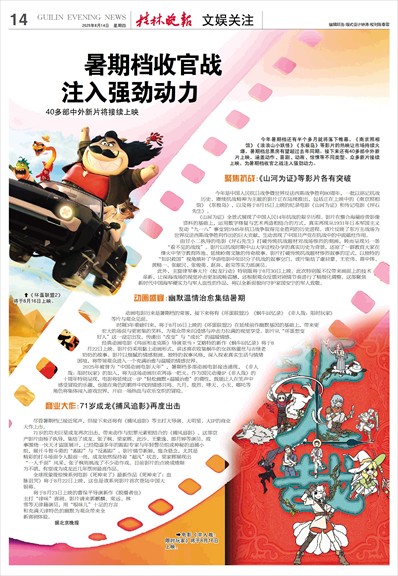 今年暑期档还有半个多月就将落下帷幕,《南京照相馆》《浪浪山小妖怪》《东极岛》等影片的热映让市场持续火爆,暑期档总票房有望超过去年同期。接下来还有40多部中外新片上映,涵盖动作、喜剧、动画、惊悚等不同类型。众多新片接续上映,为暑期档收官之战注入强劲动力。