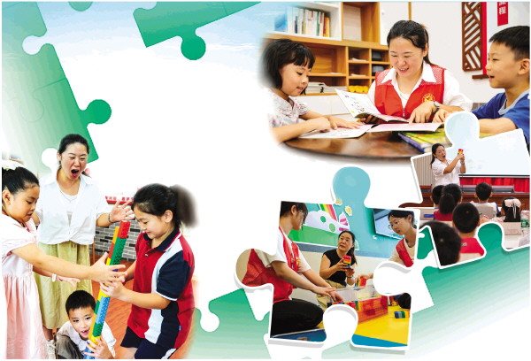 “我们开设的课程分为游戏互动、阅读分享、心理教育、自然科普等。其中,游戏互动类课程最受欢迎,特别是积木课,上到最后孩子们都是满脸笑容。”郭瑞介绍,除了课程设计本身,她还十分注重对孩子们个性化需求的关注。在日常活动中,她会细心观察每个孩子的性格特点和行为模式,比如有的孩子性格内向、不善表达,她便会在小组活动中特意创造让他们开口交流的机会,通过引导他们描述积木搭建的想法或分享阅读后的感受,帮助他们建立表达的自信。