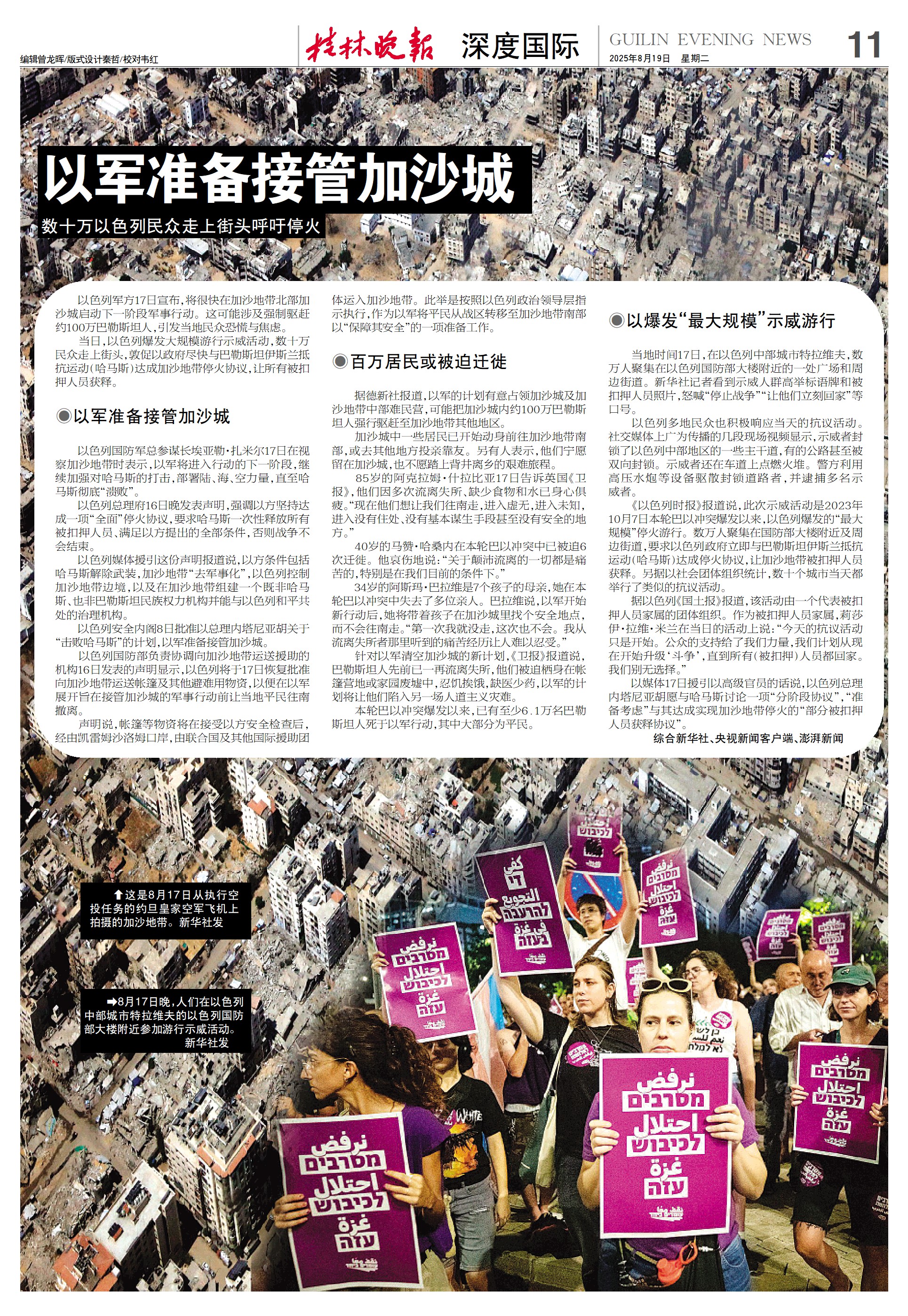 以色列安全内阁8日批准以总理内塔尼亚胡关于“击败哈马斯”的计划,以军准备接管加沙城。