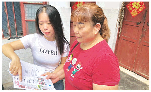 七星村委的工作人员(左)为村民讲解租赁合同里的内容。