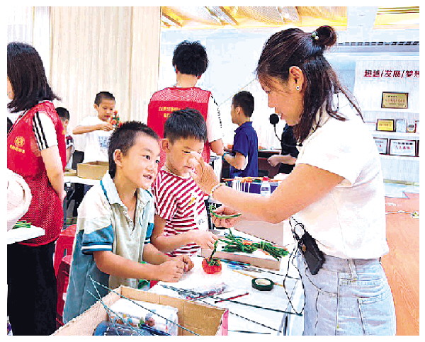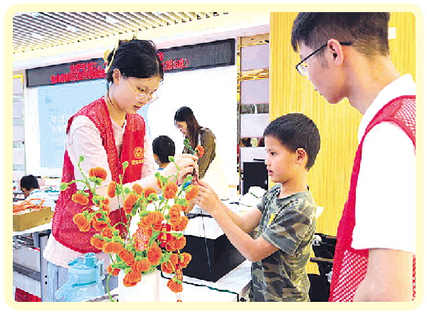 课程丰富多样 给孩子提供欢乐空间 “老师,叶子应该怎么做呀?”“老师,我做的花好不好看?”……在“专属课堂”手工课上,孩子们稚嫩的声音此起彼伏,他们专注地跟着老师的示范一步步操作。 有的孩子小心翼翼地弯折扭扭棒,试图做出花瓣的弧度;有的则发挥想象,给花朵加上了花茎和叶片。不一会儿,一朵朵色彩鲜艳、形态各异的“扭扭花”就在孩子们手中绽放。侯雨心小朋友说,要把自己做的花送给辛苦工作的妈妈。 这堂“扭扭花”手工课,只是“专属课堂”丰富内容的一个缩影。上周,老师和志愿者教孩子们制作“夏日甜丝瓜”的课程,同样点燃了孩子们的创作热情。 周翠花说,后续课程将提供更多充满趣味的主题,让孩子们了解更多知识。同时,课程还将加入“旧物改造”环节,引导孩子们利用与父母职业相关的快递盒、保温袋等进行创作。通过这样的实践,不仅能培养孩子们的环保意识和动手能力,还能让他们更直观地理解父母的辛勤工作。