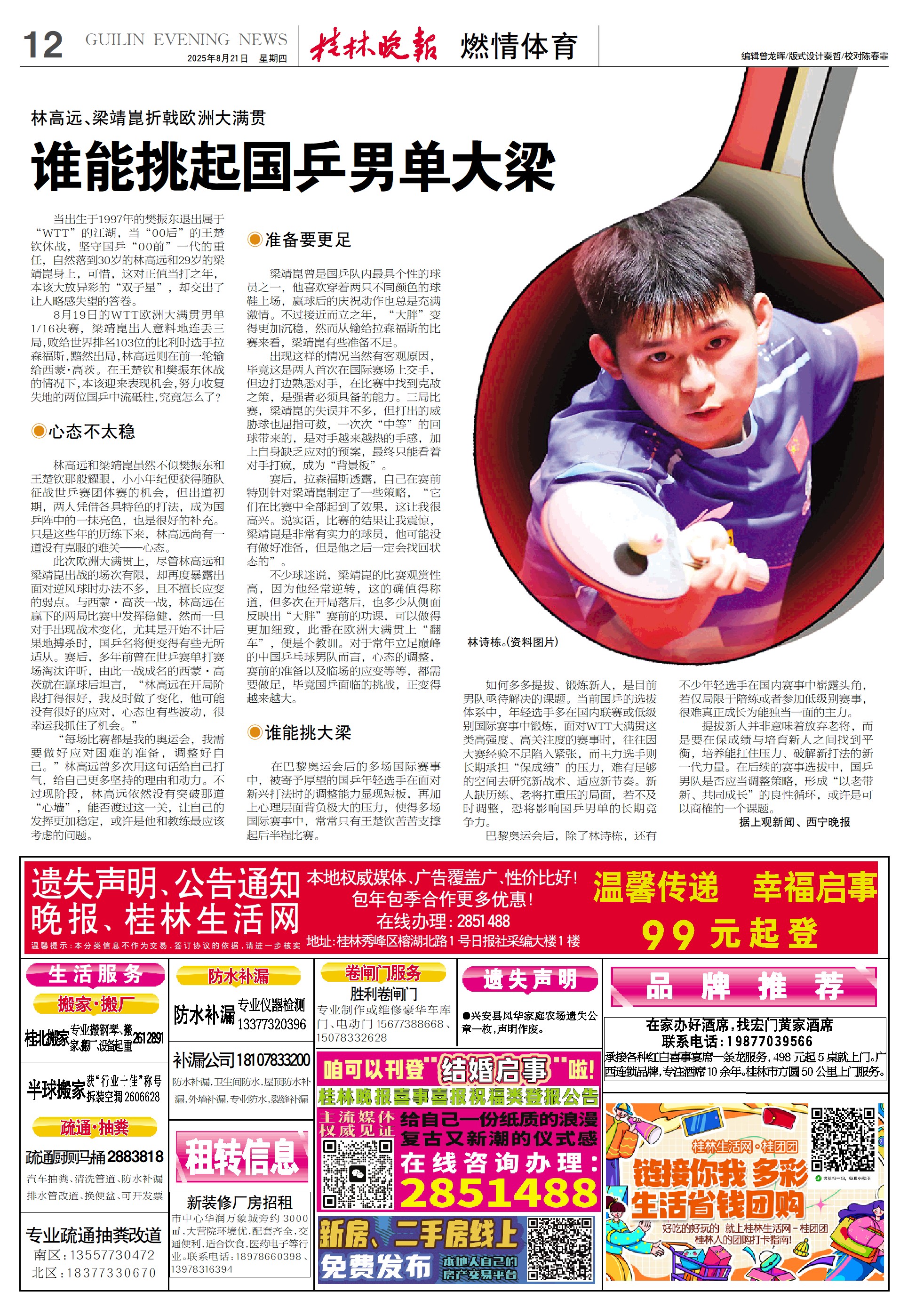 谁能挑起国乒男单大梁