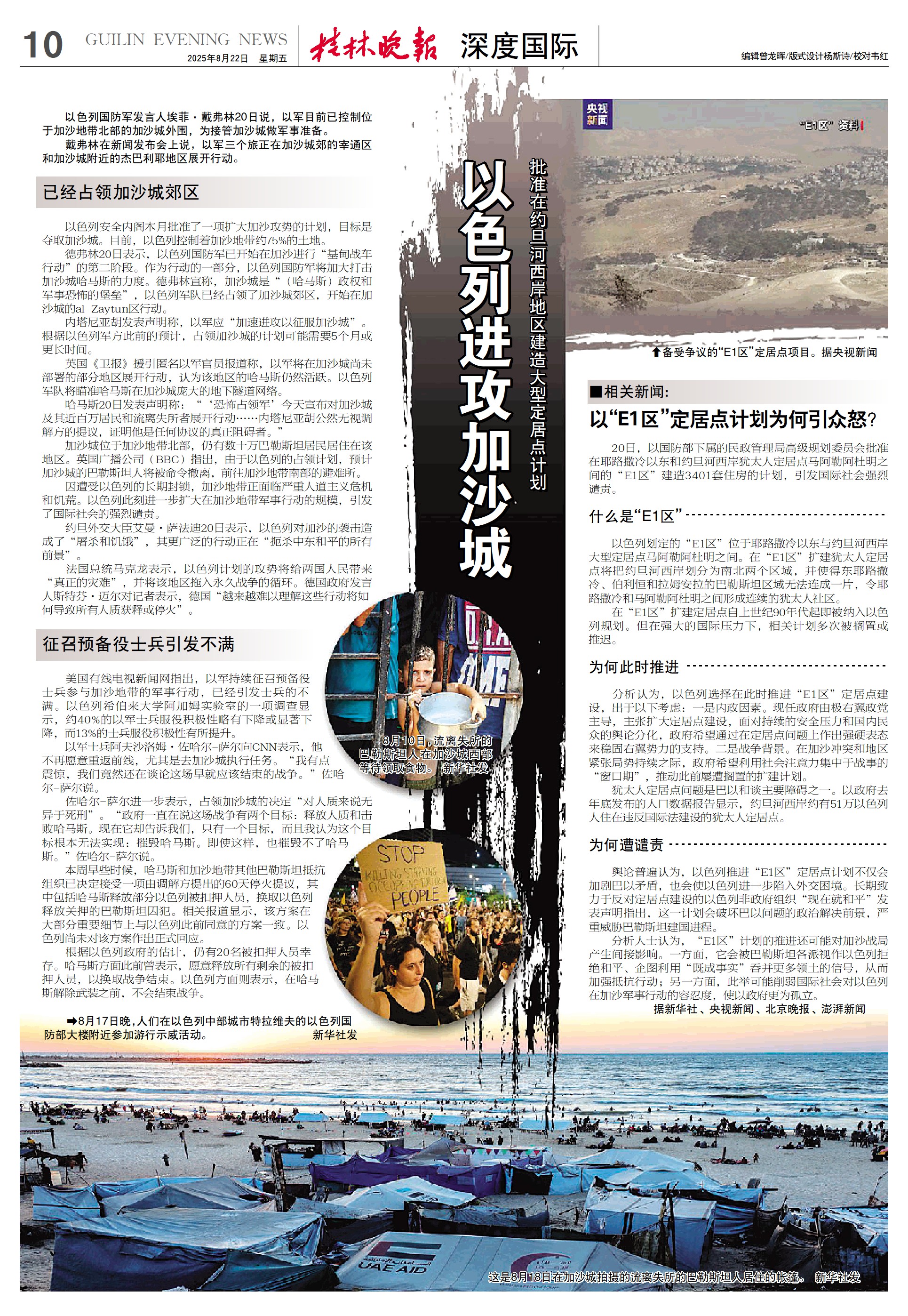 以色列安全内阁本月批准了一项扩大加沙攻势的计划,目标是夺取加沙城。目前,以色列控制着加沙地带约75%的土地。