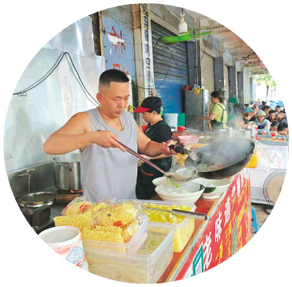 小店的就餐区只有几套木桌,靠近电风扇的位置已经被食客坐满,记者好不容易才等到空位。