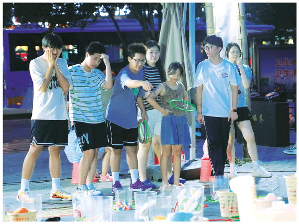 24日傍晚,市中心东西巷一个套圈游戏摊位前,几位年轻人拿到塑料圈仔细观察后抛出,每个人脸上表情各异但都充满了期待,享受游戏的乐趣。 记者邢刚 摄