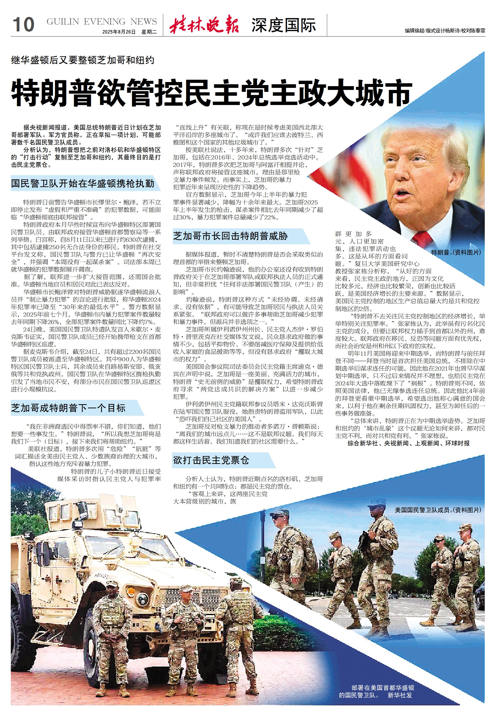“特朗普不去关注民主党控制地区的经济增长,单单特别关注犯罪率。”张家栋认为,此举虽有污名化民主党的成分,但要让联邦权力插手到首都以外的州,难度较大。联邦政府在移民、反恐等问题方面有优先权,而社会治安是州和州以下政府的实权。