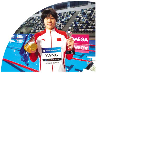 连续征战新加坡世锦赛和罗马尼亚世青赛的杨佩琪身体疲惫不堪,但斗志昂扬。几乎每天比赛,她都有金牌进账,直到赛事最后一天还在女子200米自由泳中刷新赛会纪录、提高个人最好成绩。