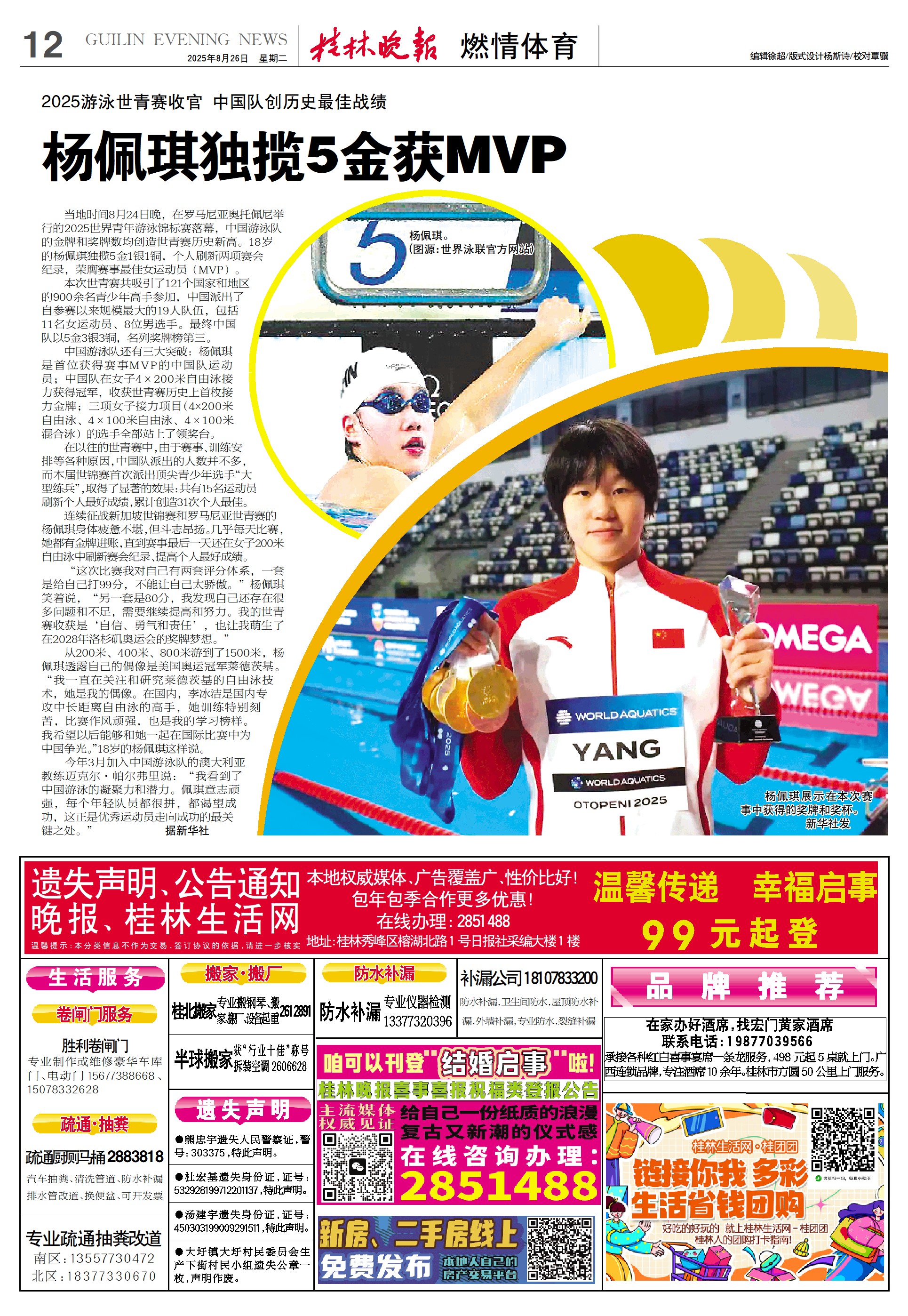 杨佩琪独揽5金获MVP