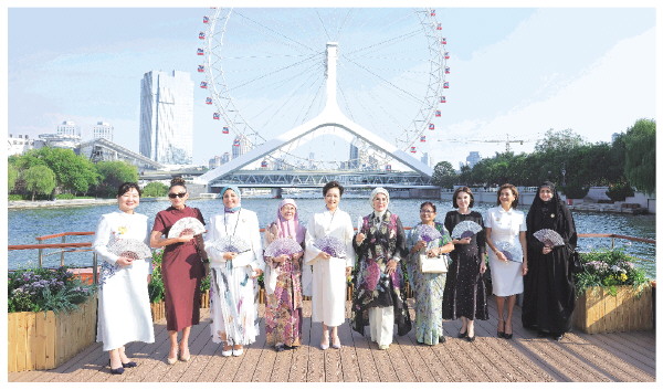彭丽媛同出席2025年上海合作组织峰会外方领导人夫人游览天津海河