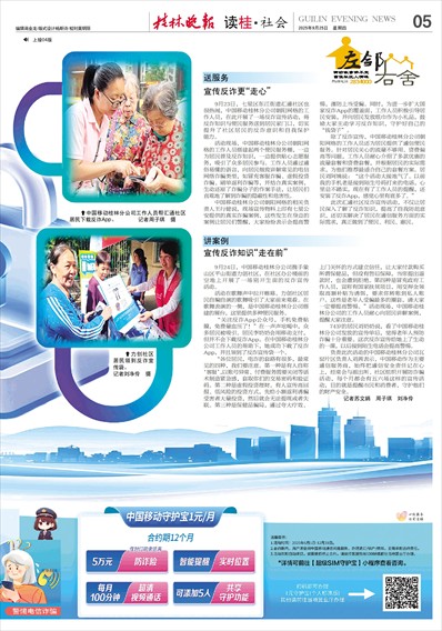 9月24日,中国移动桂林分公司携手象山区平山街道力创社区,在社区办公楼前的空地上开展了一场别开生面的反诈宣传活动。