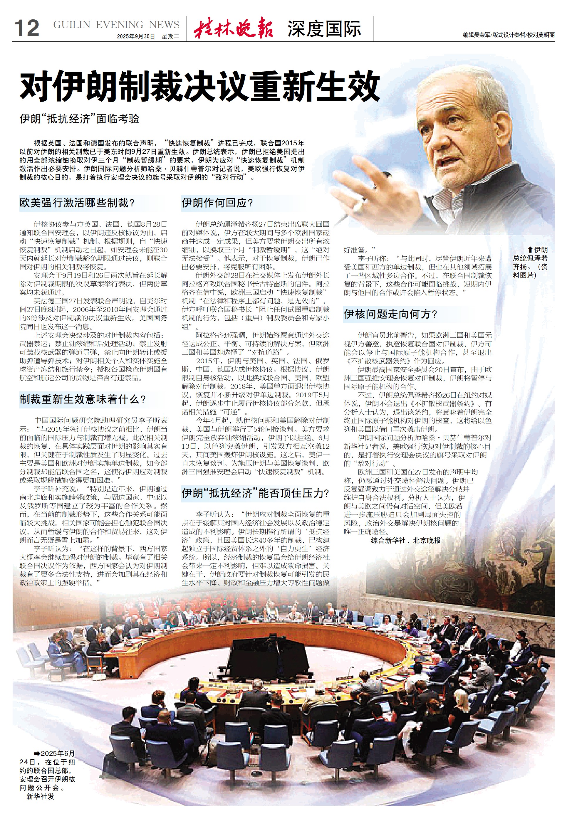 根据英国、法国和德国发布的联合声明,“快速恢复制裁”进程已完成,联合国2015年以前对伊朗的相关制裁已于美东时间9月27日重新生效。伊朗总统表示,伊朗已拒绝美国提出的用全部浓缩铀换取对伊三个月“制裁暂缓期”的要求,伊朗为应对“快速恢复制裁”机制激活作出必要安排。伊朗国际问题分析师哈桑·贝赫什蒂普尔对记者说,美欧强行恢复对伊制裁的核心目的,是打着执行安理会决议的旗号采取对伊朗的“敌对行动”。