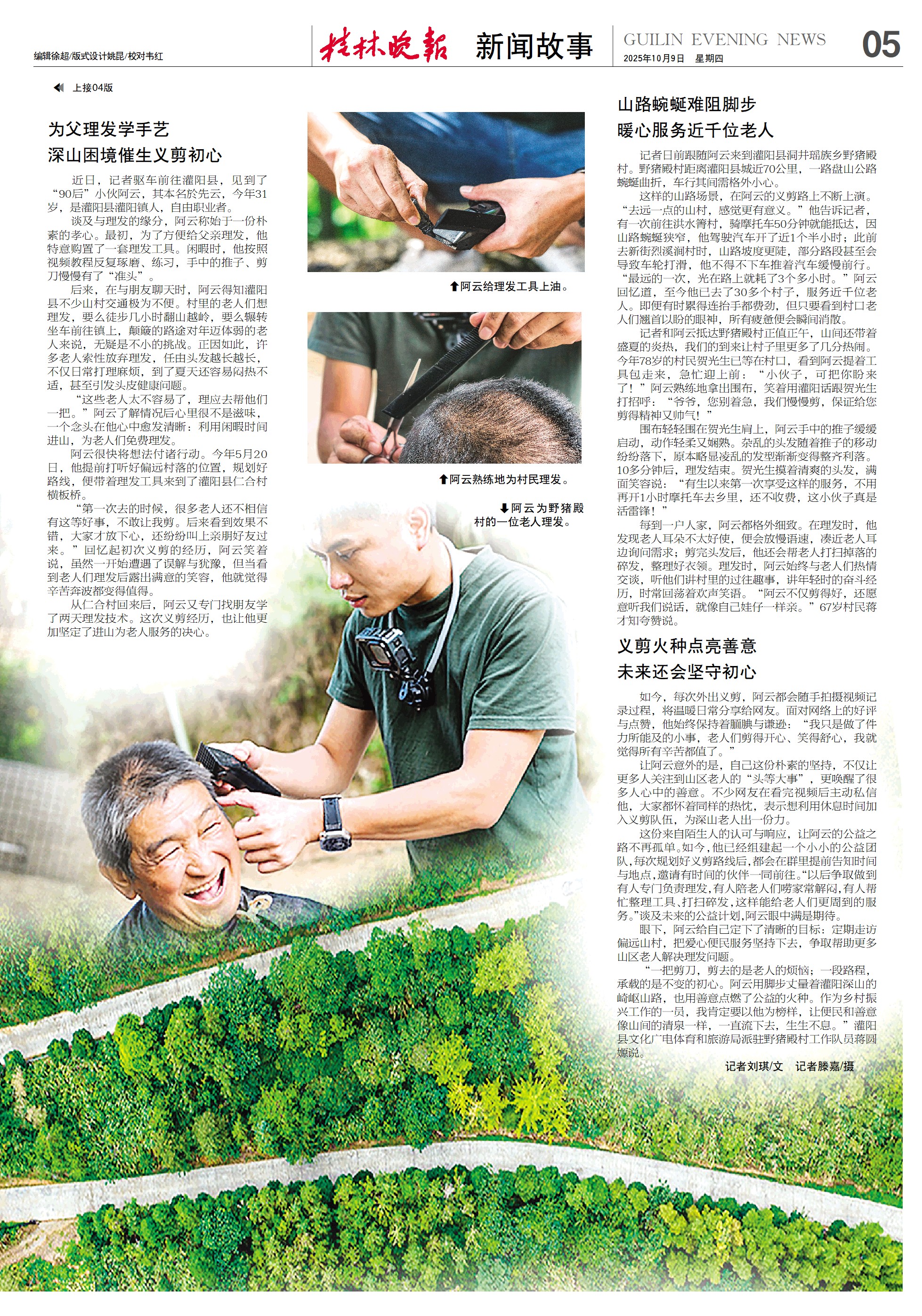 “这些老人太不容易了,理应去帮他们一把。”阿云了解情况后心里很不是滋味,一个念头在他心中愈发清晰:利用闲暇时间进山,为老人们免费理发。