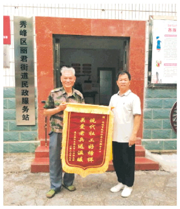如今,随着社会参与的增加、精神世界的充实,黄老先生的身心状态明显改善,腿部活动能力也有所增强,脸上的笑容越来越多,真正实现了“老有所为”。“志愿者们比家人还细心,每次看到工作站亮灯,心里就倍感踏实。”10月11日,黄老先生特意为桂林市现代社会工作服务中心送去锦旗,上书“关爱老兵送温暖,现代社工好榜样!”