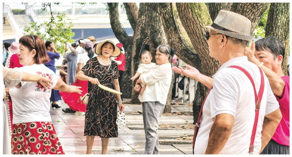 近日,文艺爱好者在滨江路上跳舞,一旁的路人看得津津有味。 记者滕嘉 摄