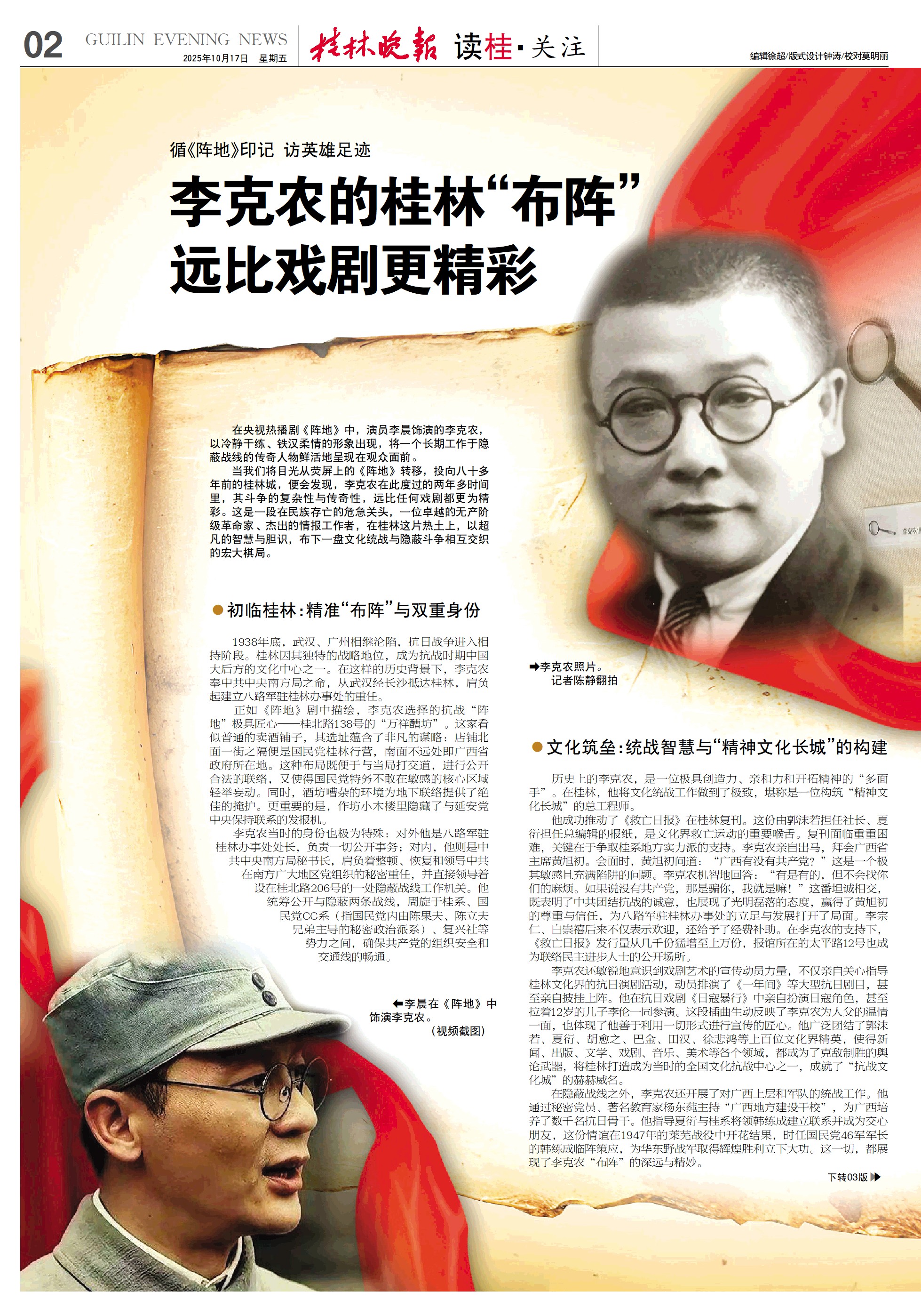 历史上的李克农,是一位极具创造力、亲和力和开拓精神的“多面手”。在桂林,他将文化统战工作做到了极致,堪称是一位构筑“精神文化长城”的总工程师。
