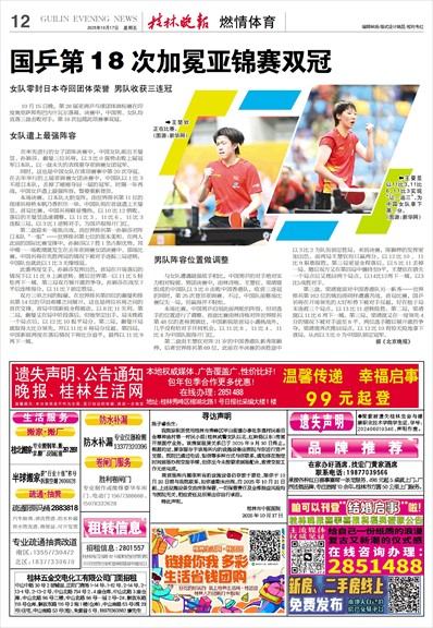 国乒第18次加冕亚锦赛双冠
