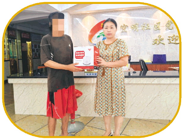 社区根据李先生的“微心愿”赠送电饭煲助其改善生活。(空明社区供图)