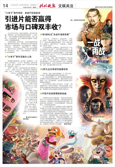 记者注意到,临近年底,引进片数量持续增加,题材类型也很多元,更有首次在中国内地亮相的知名IP——魔术犯罪片《惊天魔盗团3》时隔9年后将回归,《铁血战士:杀戮之地》与《天鹰战士:最后的冲击》均因提示“未成年观众谨慎观看”而引发关注。此外,《疯狂动物城2》《阿凡达3》将压轴登场。