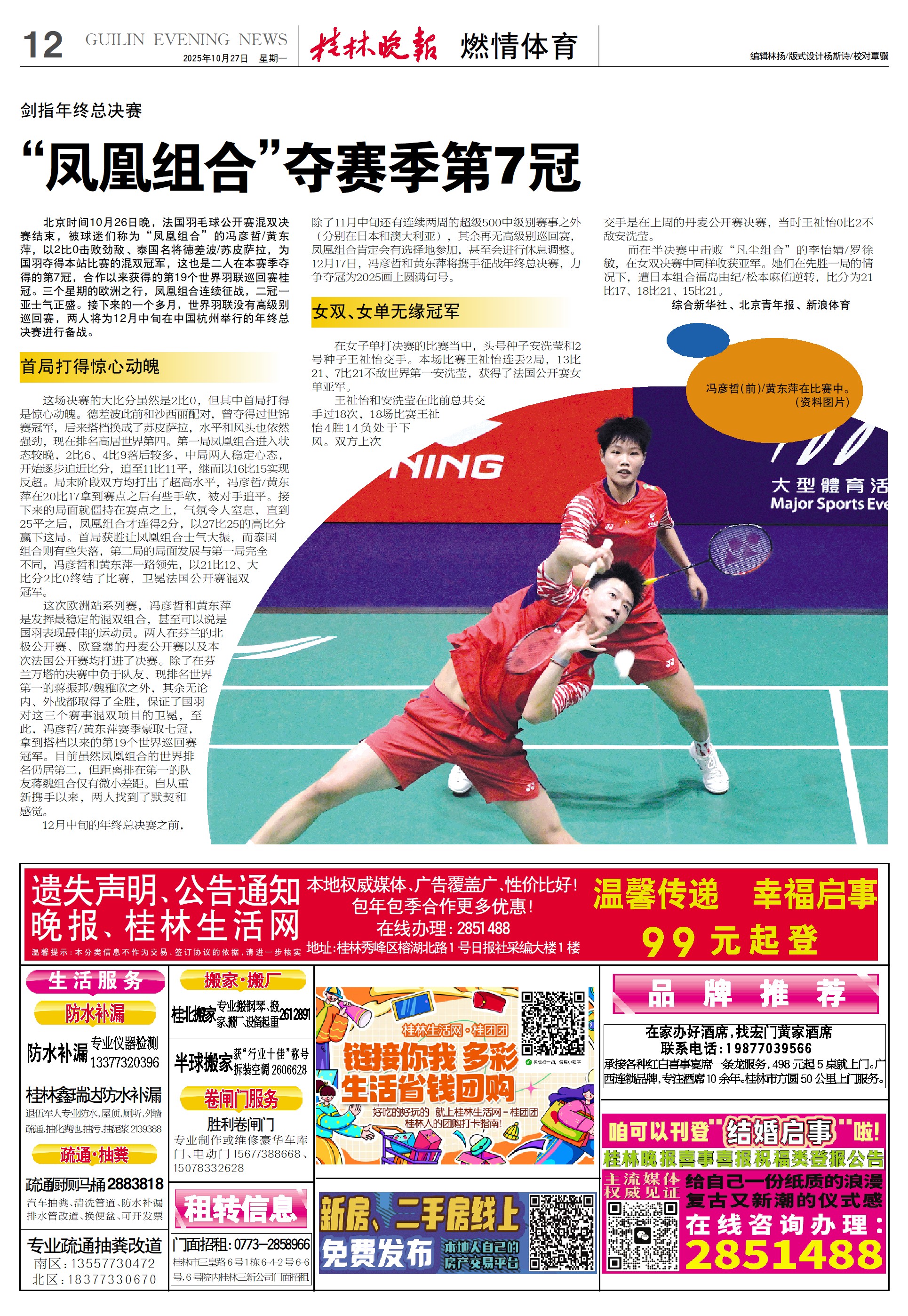 12月中旬的年终总决赛之前,除了11月中旬还有连续两周的超级500中级别赛事之外(分别在日本和澳大利亚),其余再无高级别巡回赛,凤凰组合肯定会有选择地参加,甚至会进行休息调整。12月17日,冯彦哲和黄东萍将携手征战年终总决赛,力争夺冠为2025画上圆满句号。