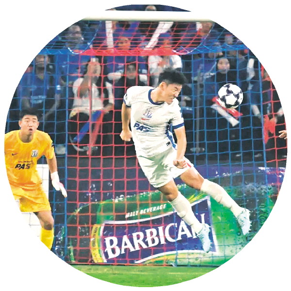 上海申花队球员朱辰杰在比赛中头球解围。新华社发
